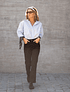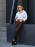 Mantienen el mismo calce que tanto nos encanta —tiro medio-alto, ajustado en la cintura y recto en las piernas—, pero en un tejido más sobrio y elegante, ideal para esas ocasiones que piden un look un poco más elevado.