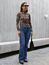 Nuestra clásica polera Alexa está de vuelta! Este icónico modelo de la colección, tiene el cuello alto y manga larga. En tela de lycra fría con estampado de leopardo, es el básico perfecto para abrigarte con estilo en los días de frío.