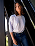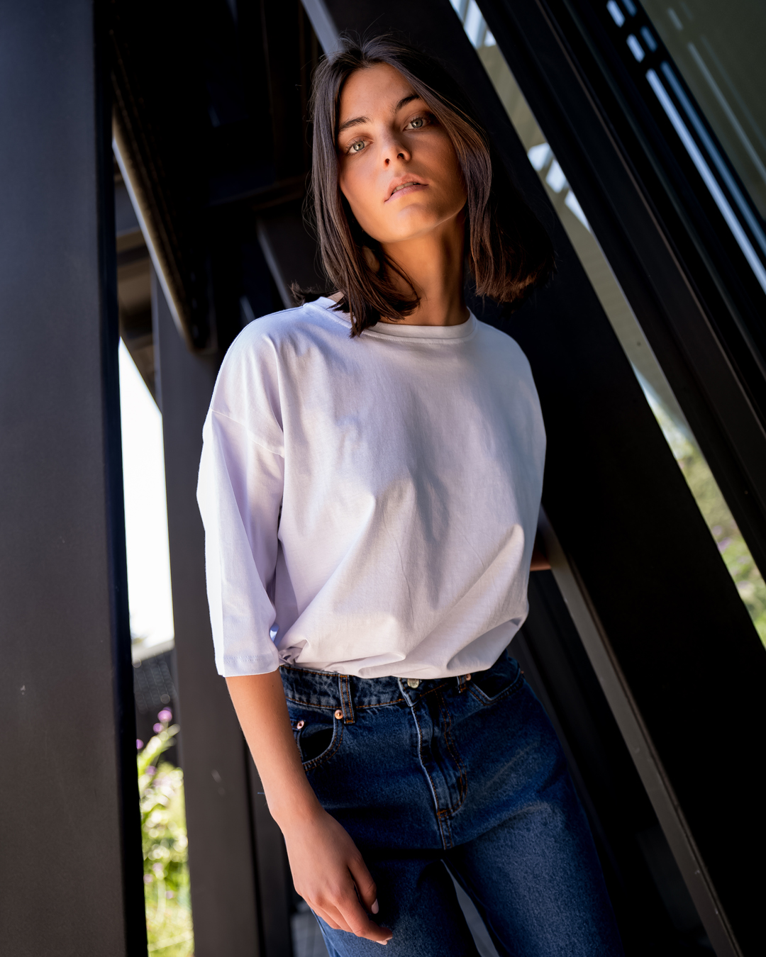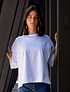 Polera de manga corta y cuello redondo con un fit oversized. Sus hombros caídos y mangas un poco más largas, la hacen un básico con personalidad.